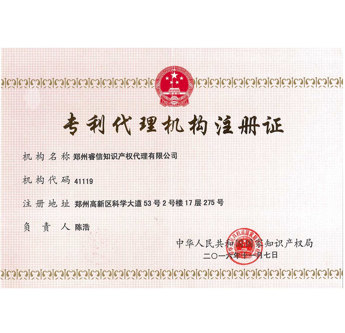 公司在中華全國專利代理人協(xié)會改選中被選為常務理事單位,是河南省唯一的常務理事單位。